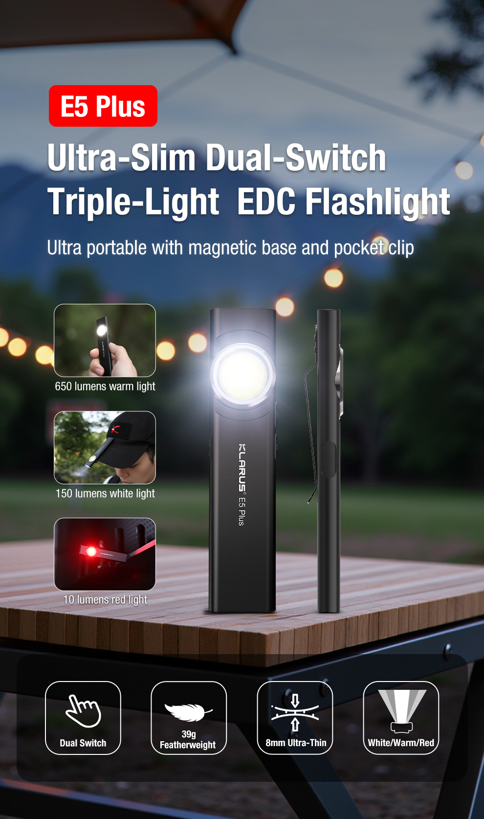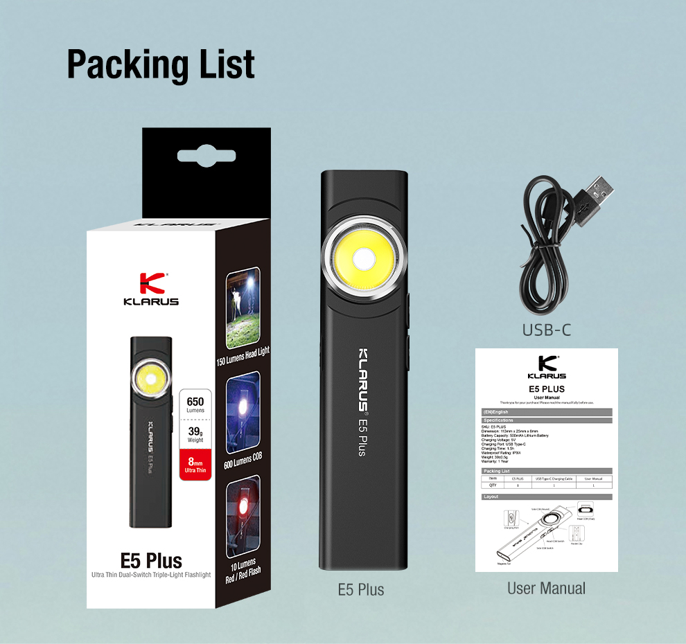 - Beschreibung Klarus E5 nun in der aktuellen Plus Version.Neu in der Plus Version ist die deutlich einfachere Bedienung über nun 2 Seiten… Mehr