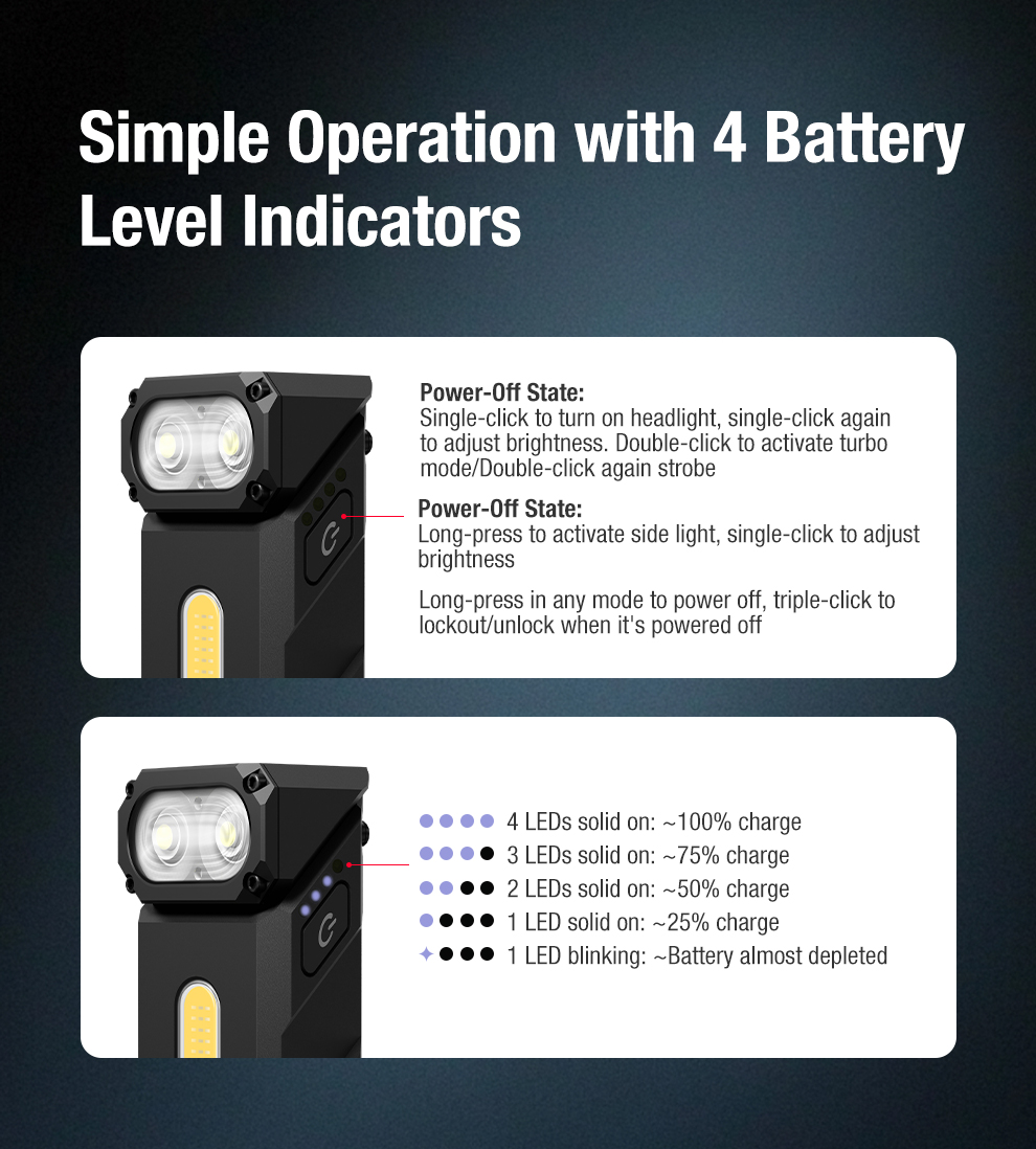 Ein beidseitig verwendbarer Clip sowie die magnetische Möglichkeit der Befestigung und der schwenkbare Lampenkopf lassen unzählige Möglichkeiten zu.