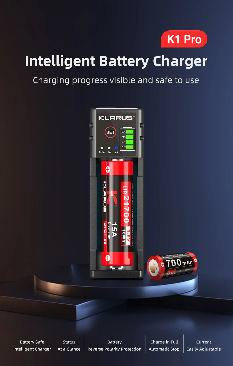 Das intelligente Batterieladegerät Klarus K1 Pro ermöglicht schnelles und zuverlässiges Laden einer Vielzahl von Batterien. Mit erweiterten Sicherheitsfunktionen und intelligenten Ladefunktionen ist es das perfekte Werkzeug für effizientes Energiemanagement.