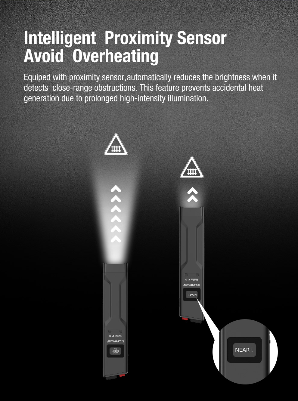 Im Lampenkopf sind die beiden Luminus SST70 LED`s verbaut sowie ein Sensor der der bei zu geringem Abstand zu Personen oder Gegenständen die Leistung reduziert.
