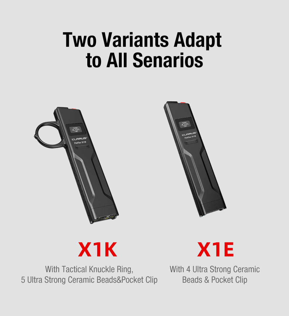 Die X1 gibt es in 2 Ausführungen die X1E oder die X1K mit fest angbrachtem Fingerring.