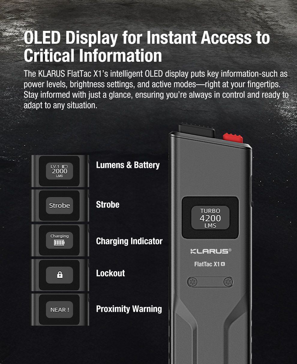 Ein OLED Display informiert über die aktuel abgegebene Leistung den Akkustand oder als Ladeanzeige sowie Warnhinweise.