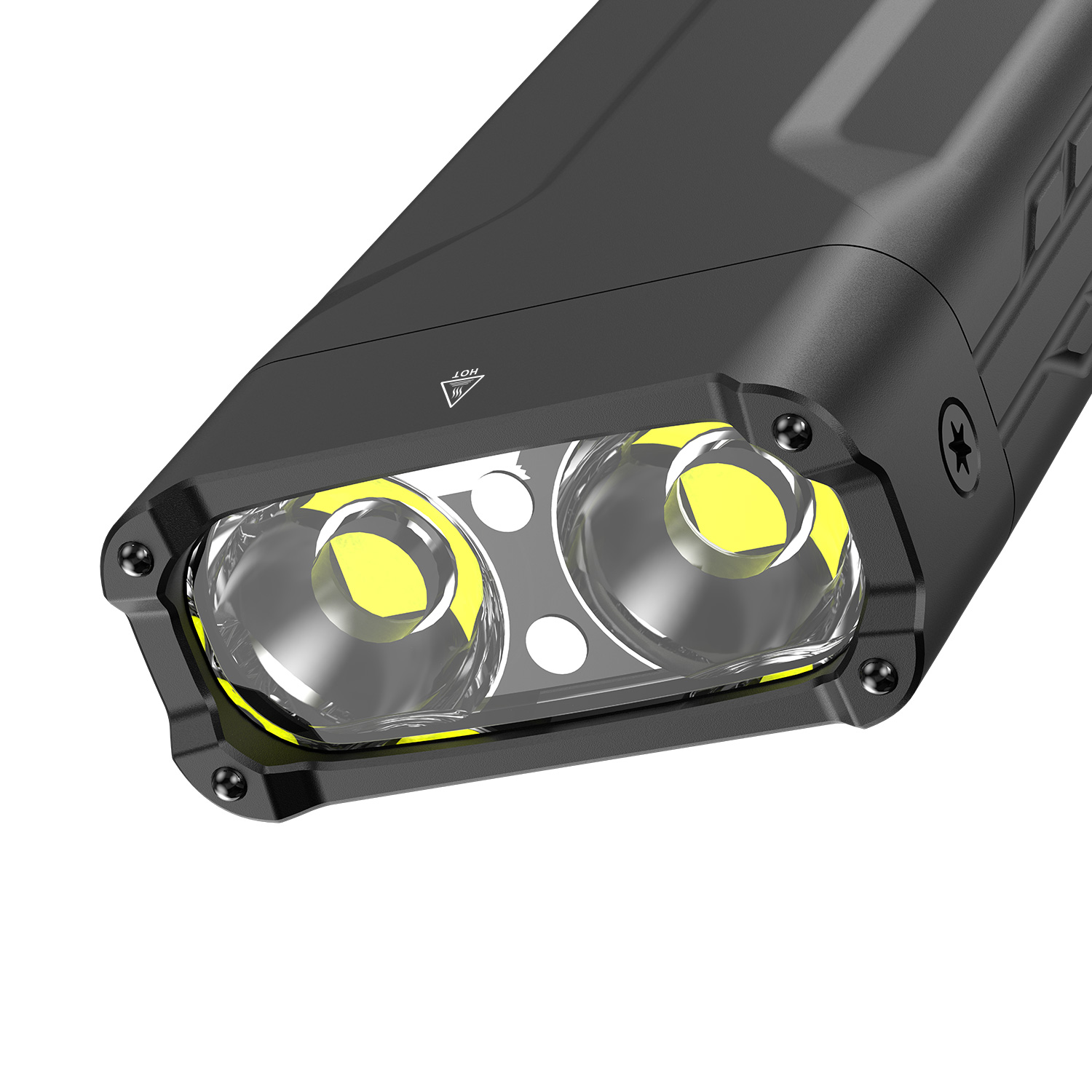 Die Bedienung erfolgt über 2 Schalter am Heck die vom Prinzip wie de bekannte Doppelschalter der Klarus Lampen funktioniert, das abgeschrägte Design kommt der Ergonomie entgegen.