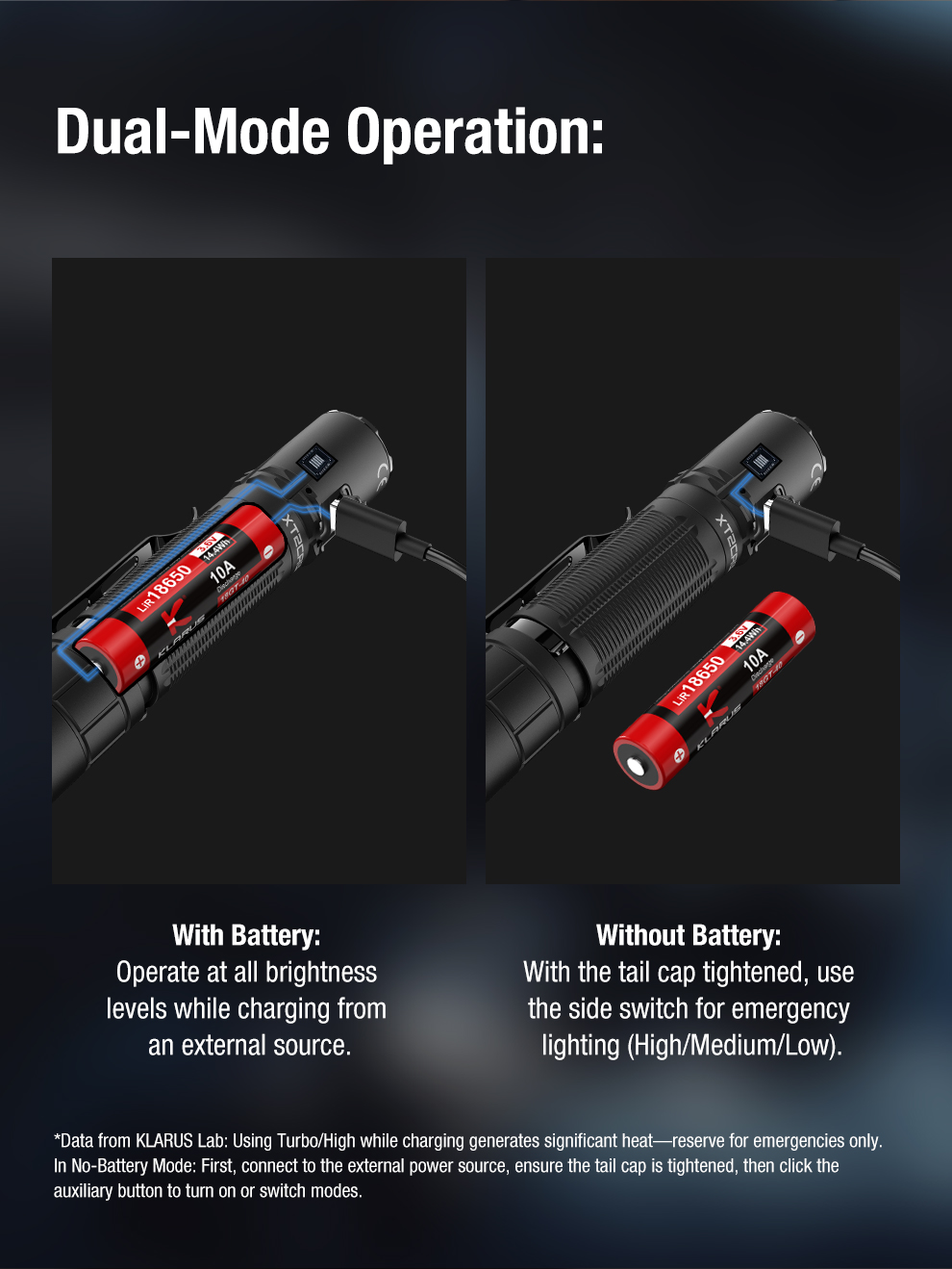 Die Lampe lässt sich direkt im Low Modus, High Modus oder Strobe starten, so lassen sich alle Funktion ohne Umstellung der Grundeinstellung nutzen.
