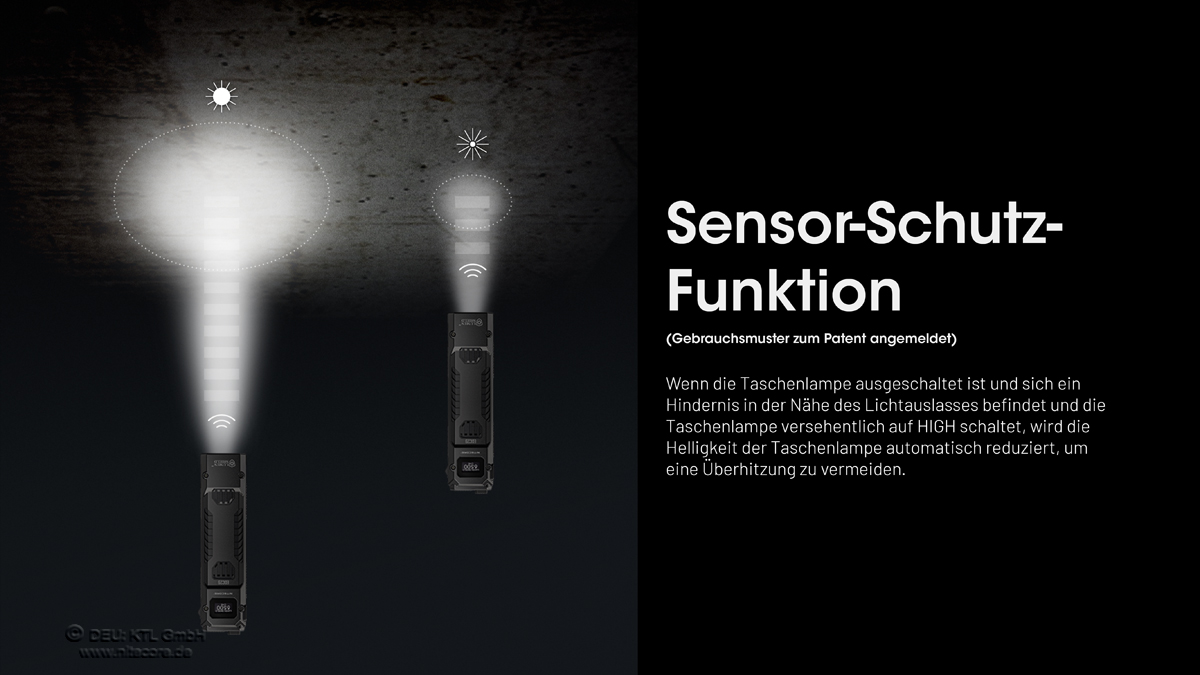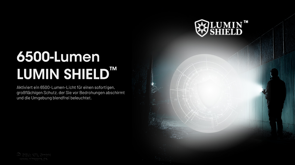 Dies ermöglicht mehrere Lichtbilder wie LUMIN SHIELD, STROBE, SEARCH Spot- und Flutlicht.